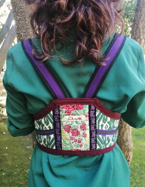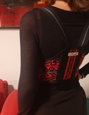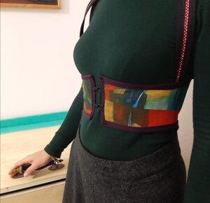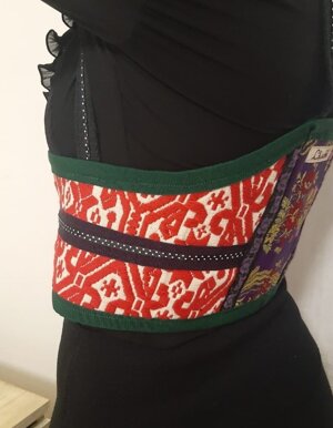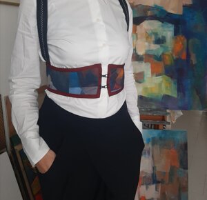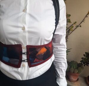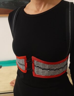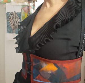 Per la creazione di questi corsetti sono state utilizzate stoffe realizzate con le opere artistiche di Grazia Bardi e Pierina Lunesu che non finirò mai di ringraziare per la loro costante fonte di ispirazione.